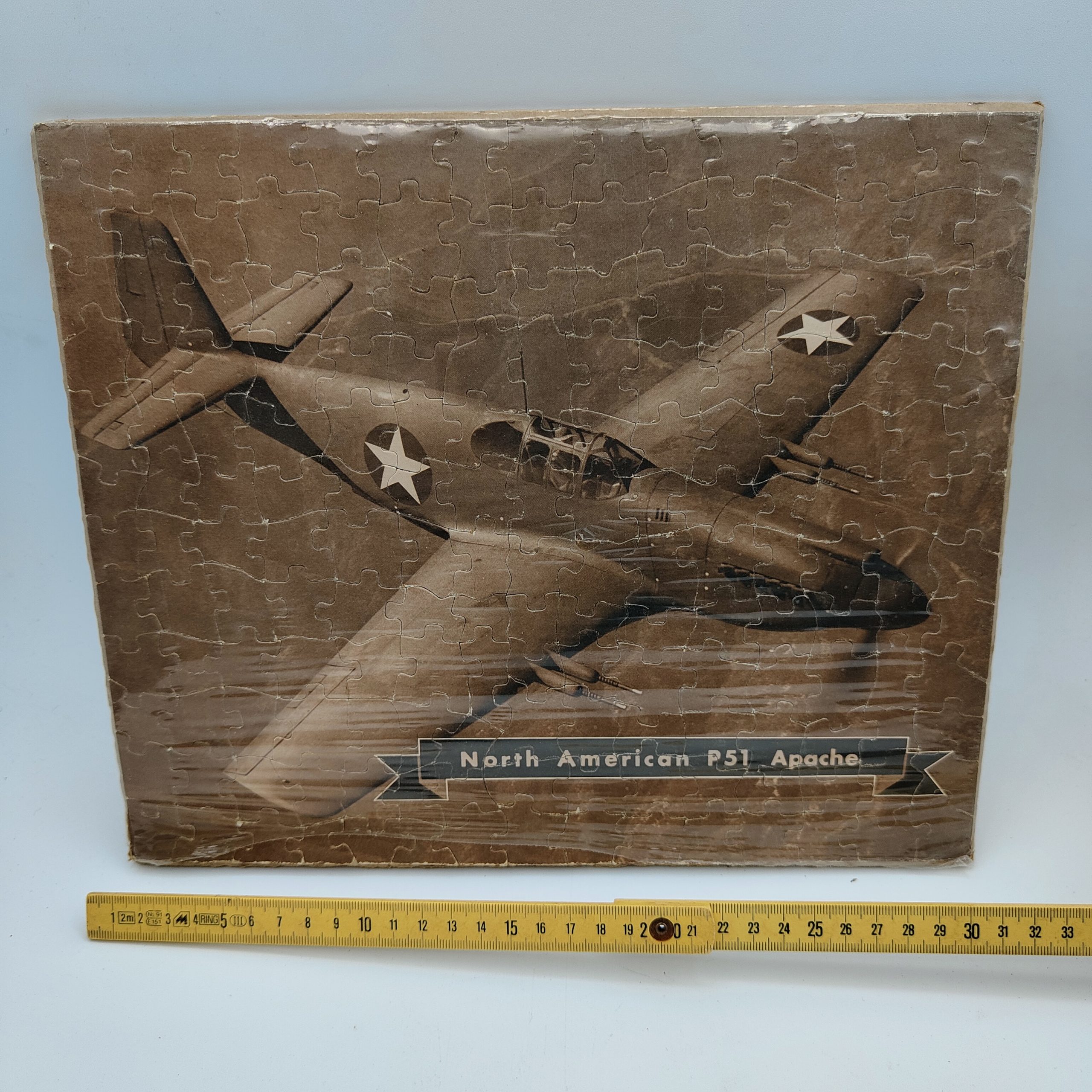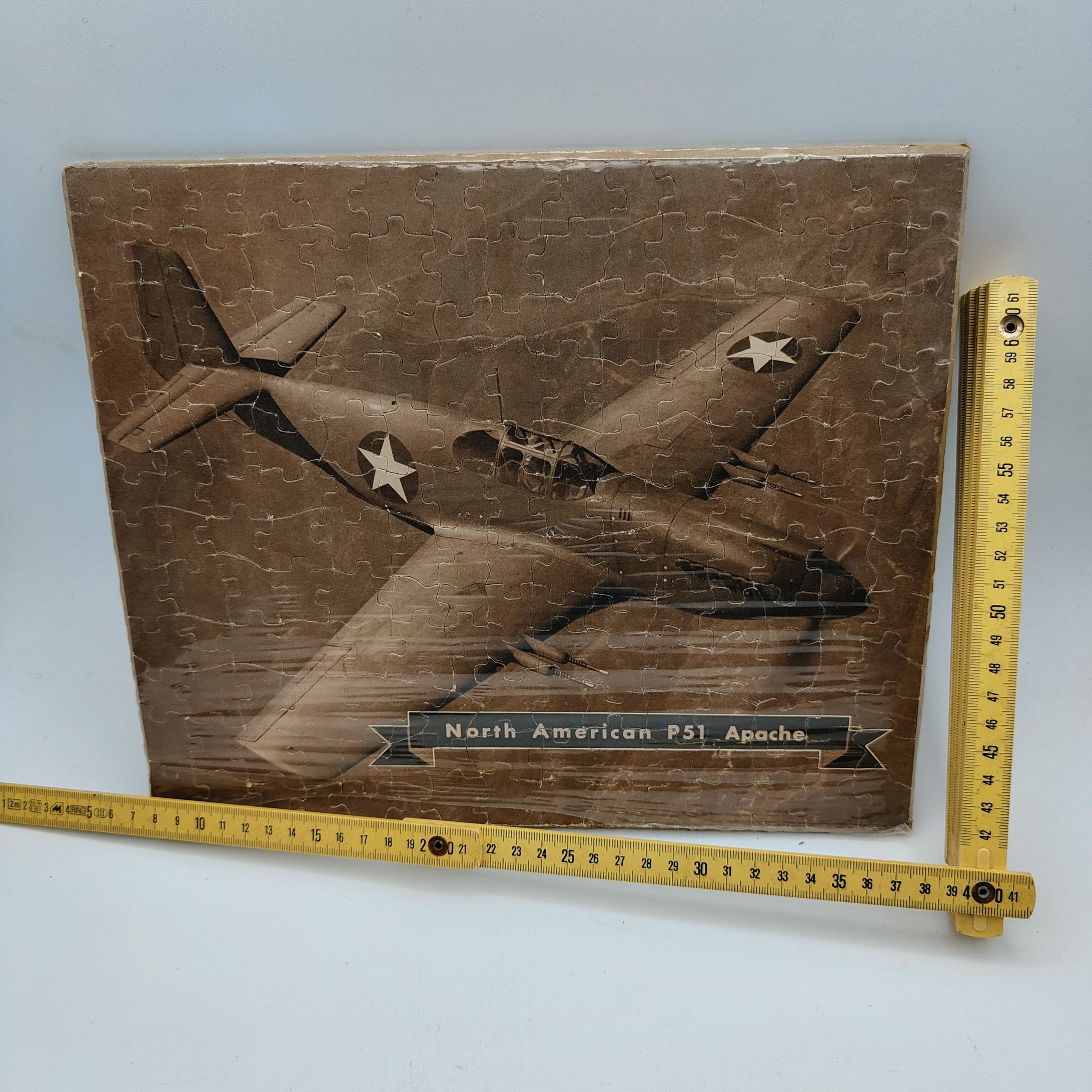 CURIOSO PUZZLE USA PROBABILMENTE FINE ANNI 40/50 RAFFIGURANTE UN CACCIA P51 MUSTANG APACHE MISURE 30X25
